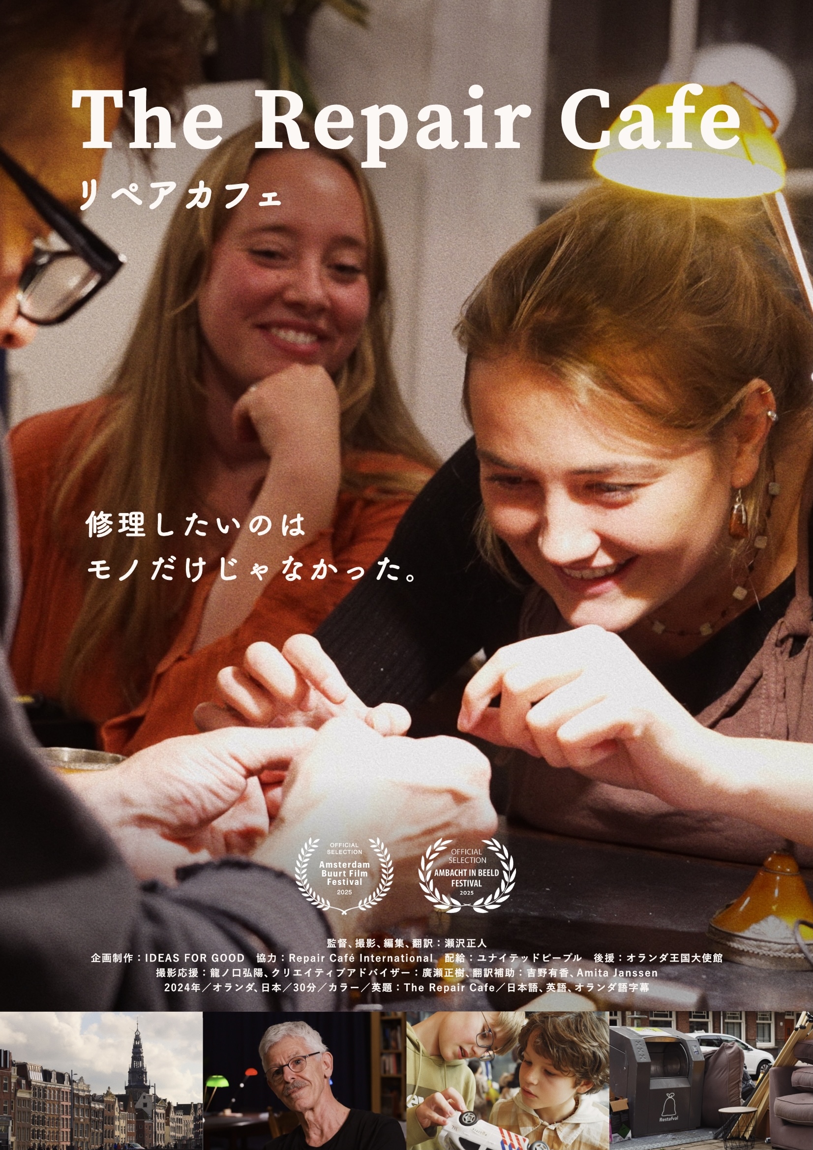 IDEAS FOR GOODが贈る、初のオリジナルショートドキュメンタリー『リペアカフェ』は、そんなリペアカフェ発祥の地であるオランダ・アムステルダムを舞台に、彼らの活動に密着。その中で生まれたコミュニケーションから、私たちの身の回りにあるモノと人との関係性や、真の豊かさを見つめ直します。